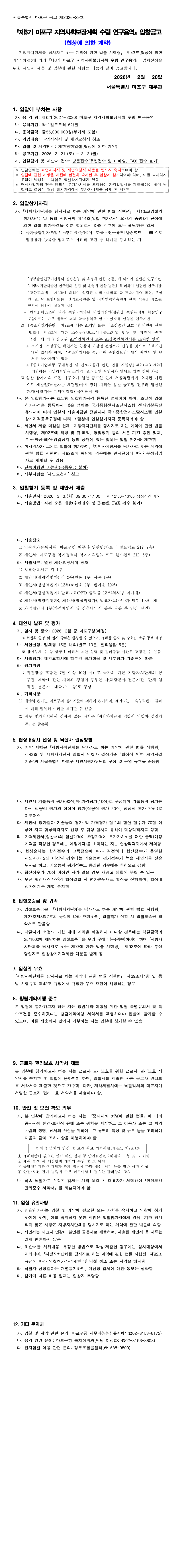 제6기(2027~2030) 마포구 지역사회보장계획 수립 연구용역 |