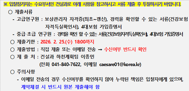 - 입찰에 관한 사항 : 회계과 계약팀 ☎ 041-840-8112