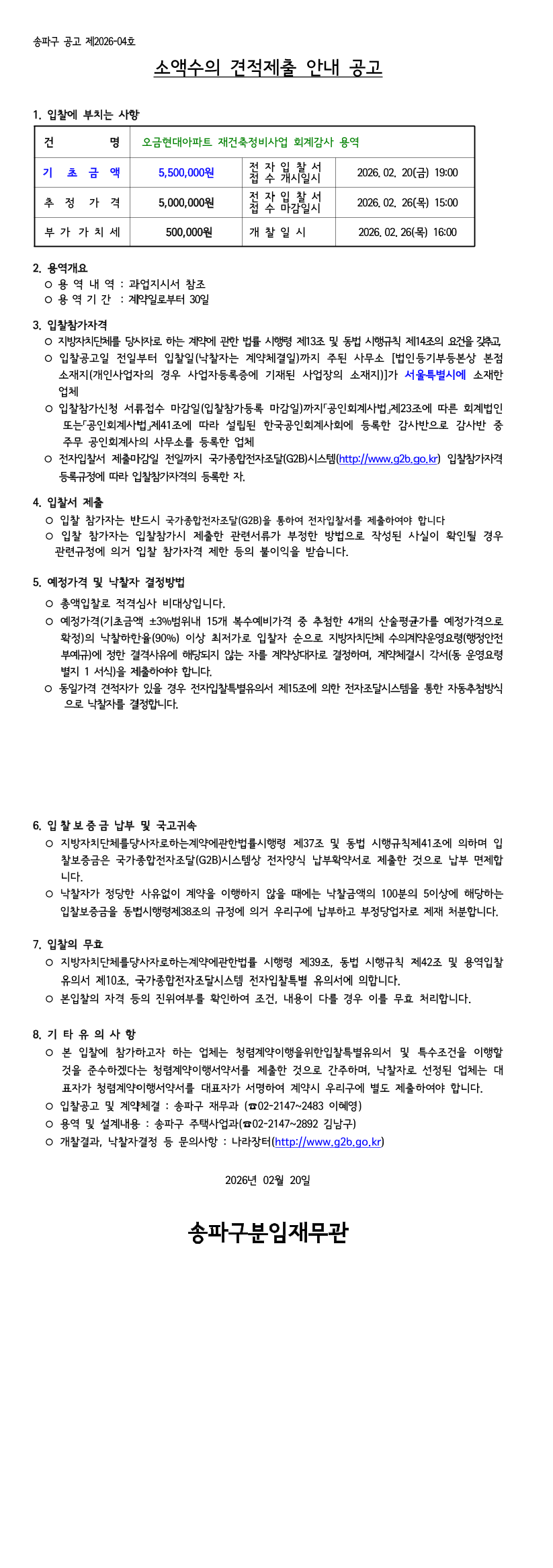 오금현대아파트 재건축정비사업 회계감사 용역 |