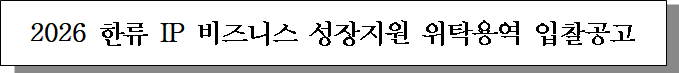 ㅇ 입찰건명 : 2026 한류 IP 비즈니스 성장지원 위탁용역