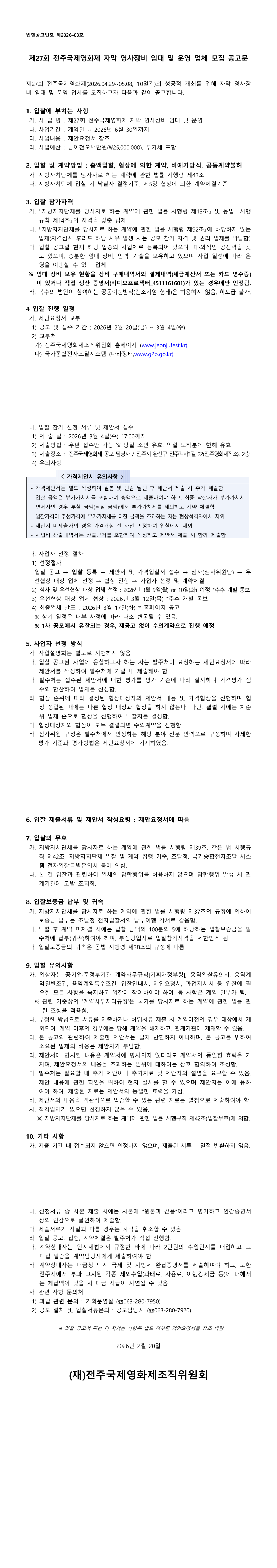 제27회 전주국제영화제 자막 영사장비 임대 및 운영 업체 모집 |