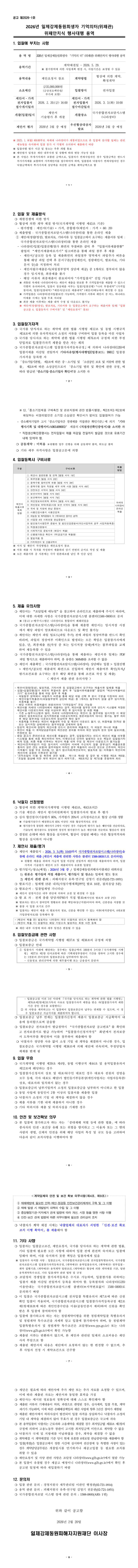 2026년 일제강제동원희생자 기억의 터(위패관) 위패안치식 행사대행 용역 |