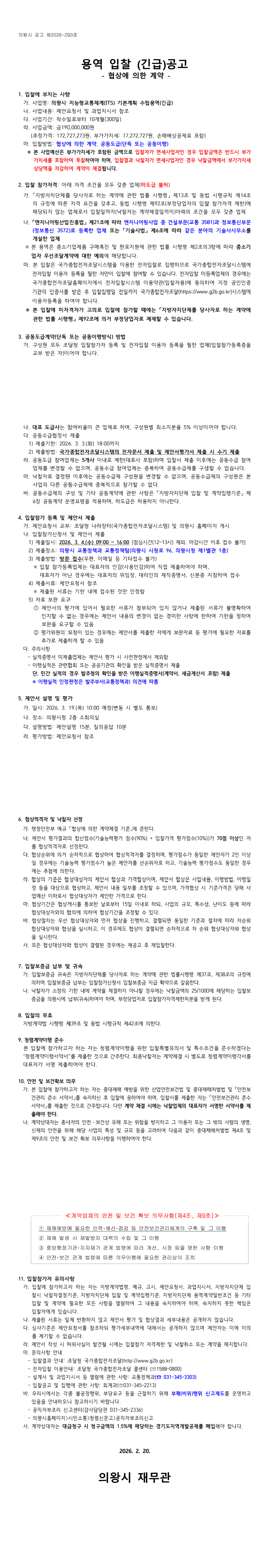 의왕시 지능형교통체계(ITS) 기본계획 수립용역(협상에 의한 계약) |