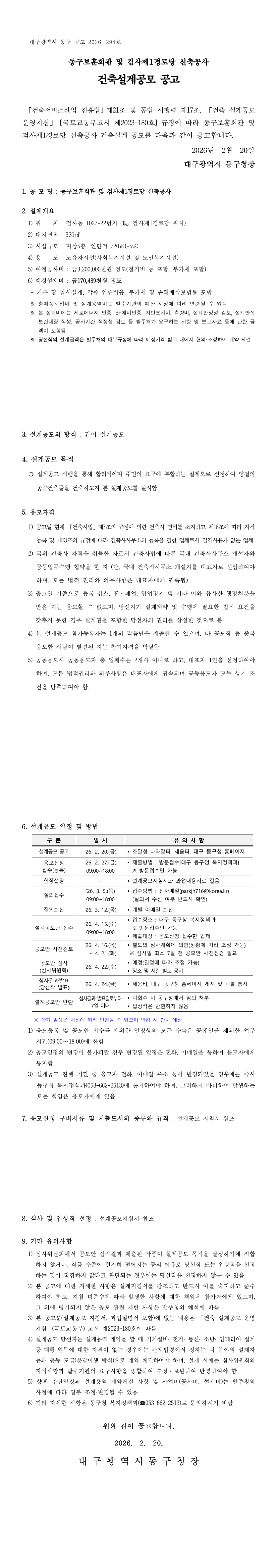 동구보훈회관 및 검사제1경로당 신축공사 건축설계공모(간이공모) |
