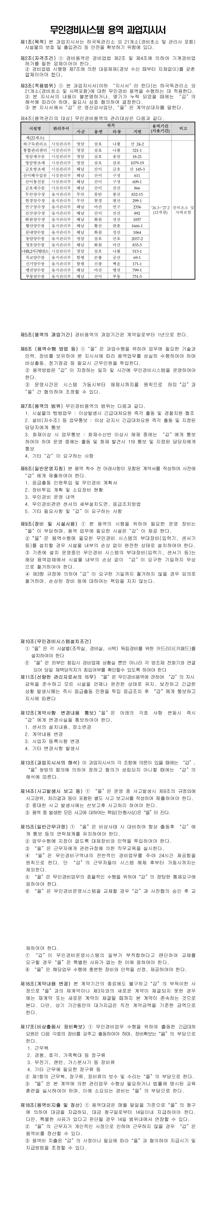 2026년 하구둑관리소 외 21개소 무인경비시스템 용역 |