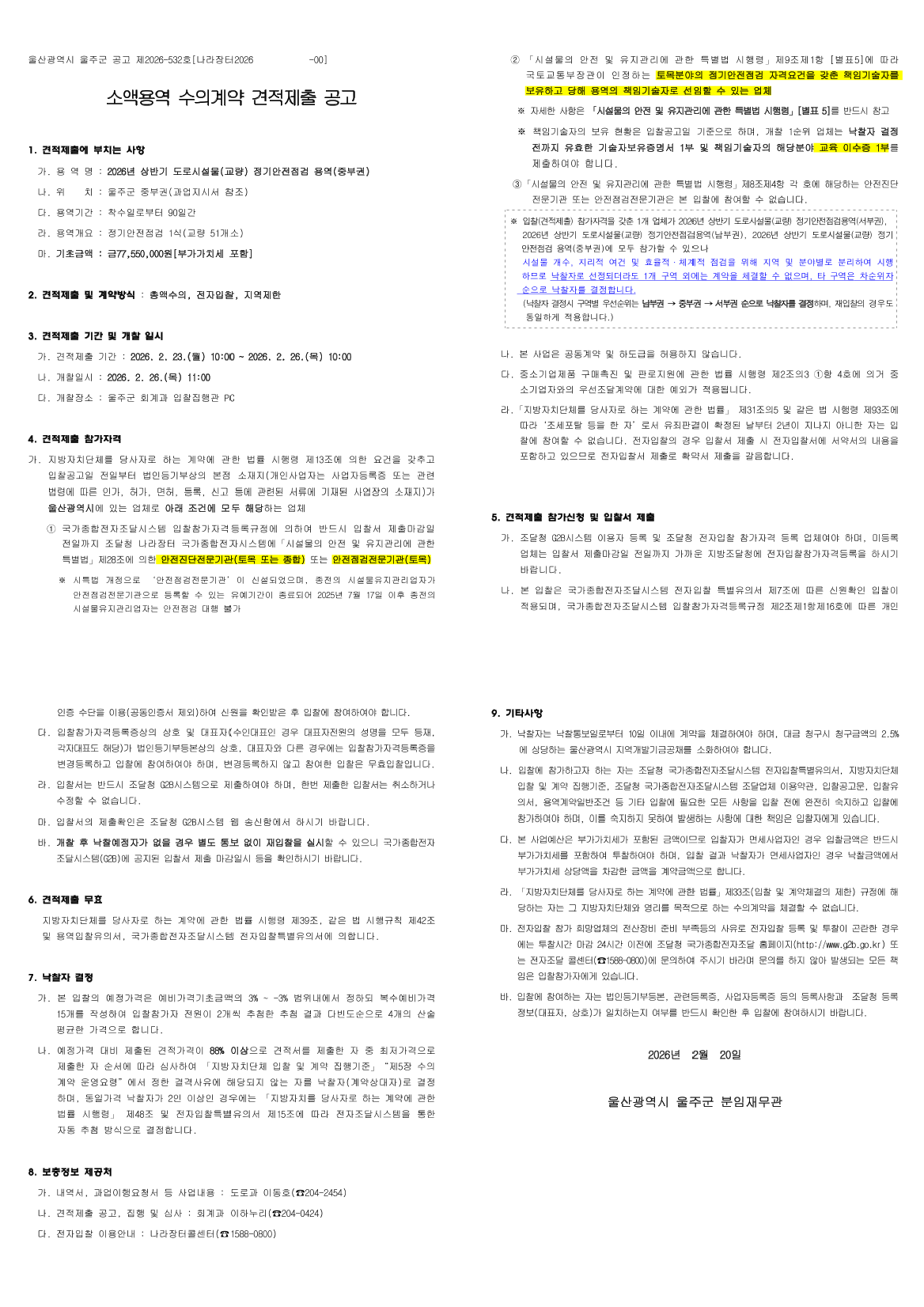 2026년 상반기 도로시설물(교량) 정기안전점검 용역(중부권) |