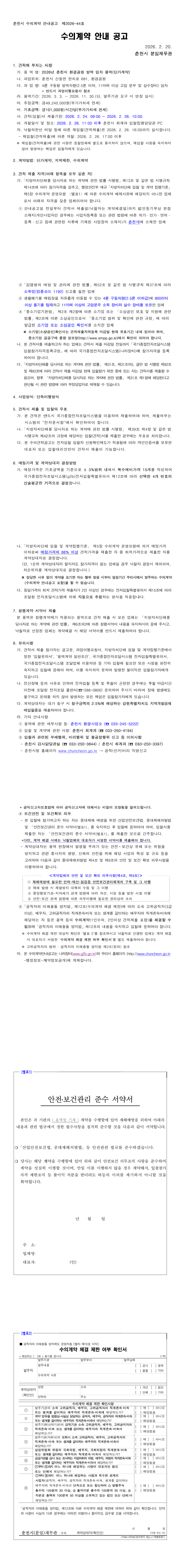 2026년 춘천시 환경공원 방역 임차 용역(단가계약) |