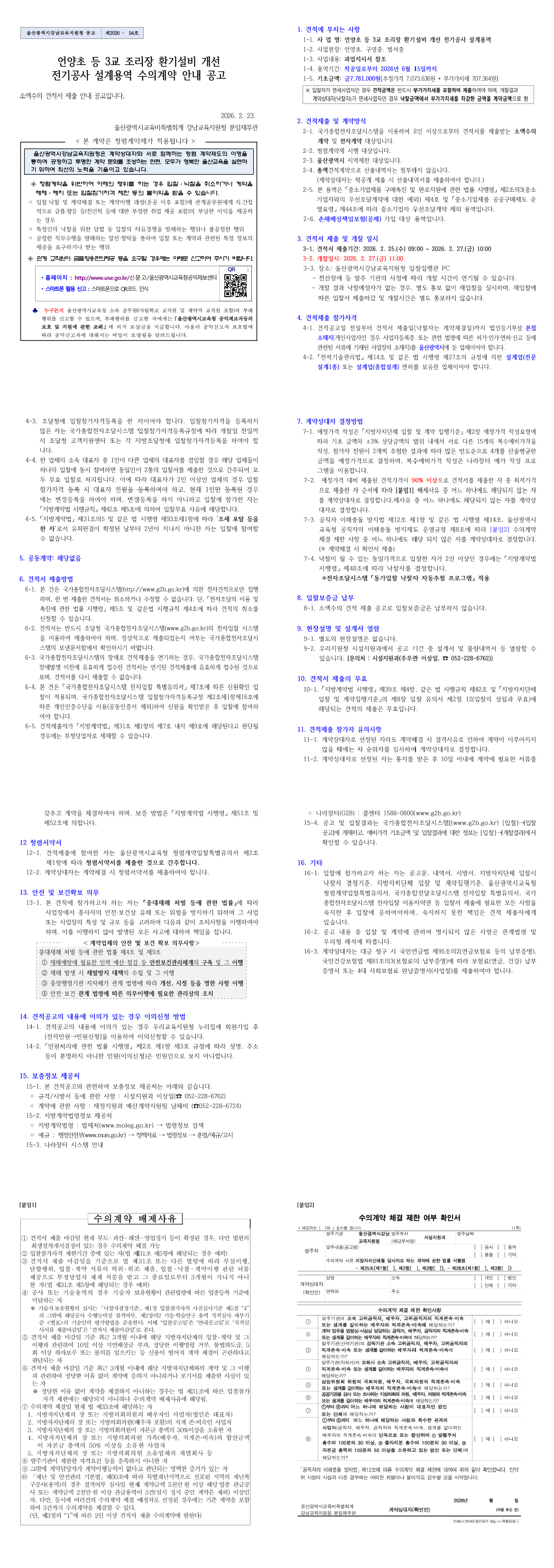 언양초 등 3교 조리장 환기설비 개선 전기공사 설계용역 |