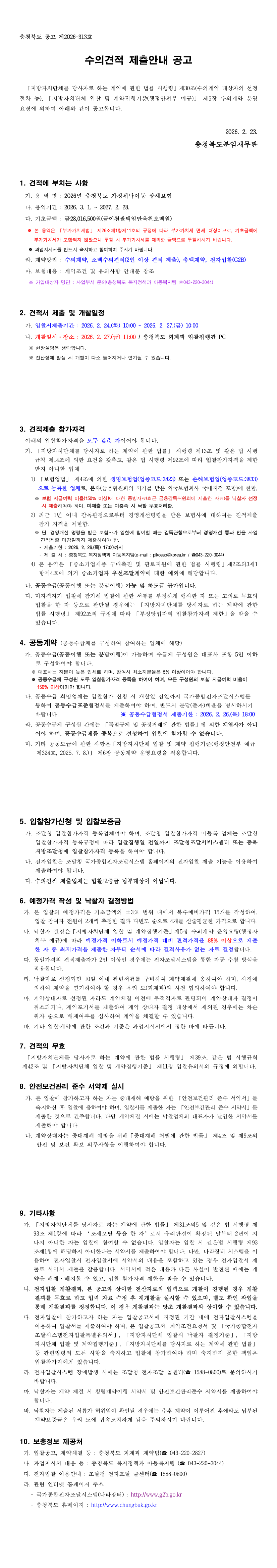 2026년 충청북도 가정위탁아동 상해보험 |