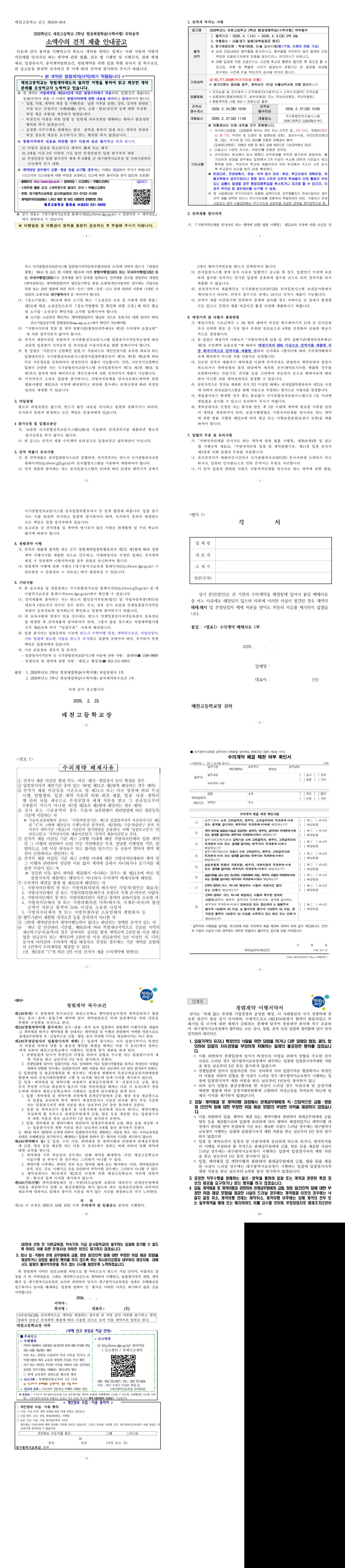 2026학년도 매천고등학교 2학년 현장체험학습(수학여행) 위탁용역(긴급) |