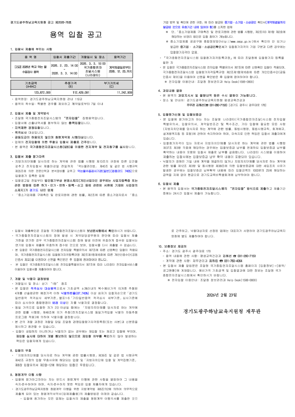 [긴급] 2026년도 학교 먹는 물 수질검사 용역 |