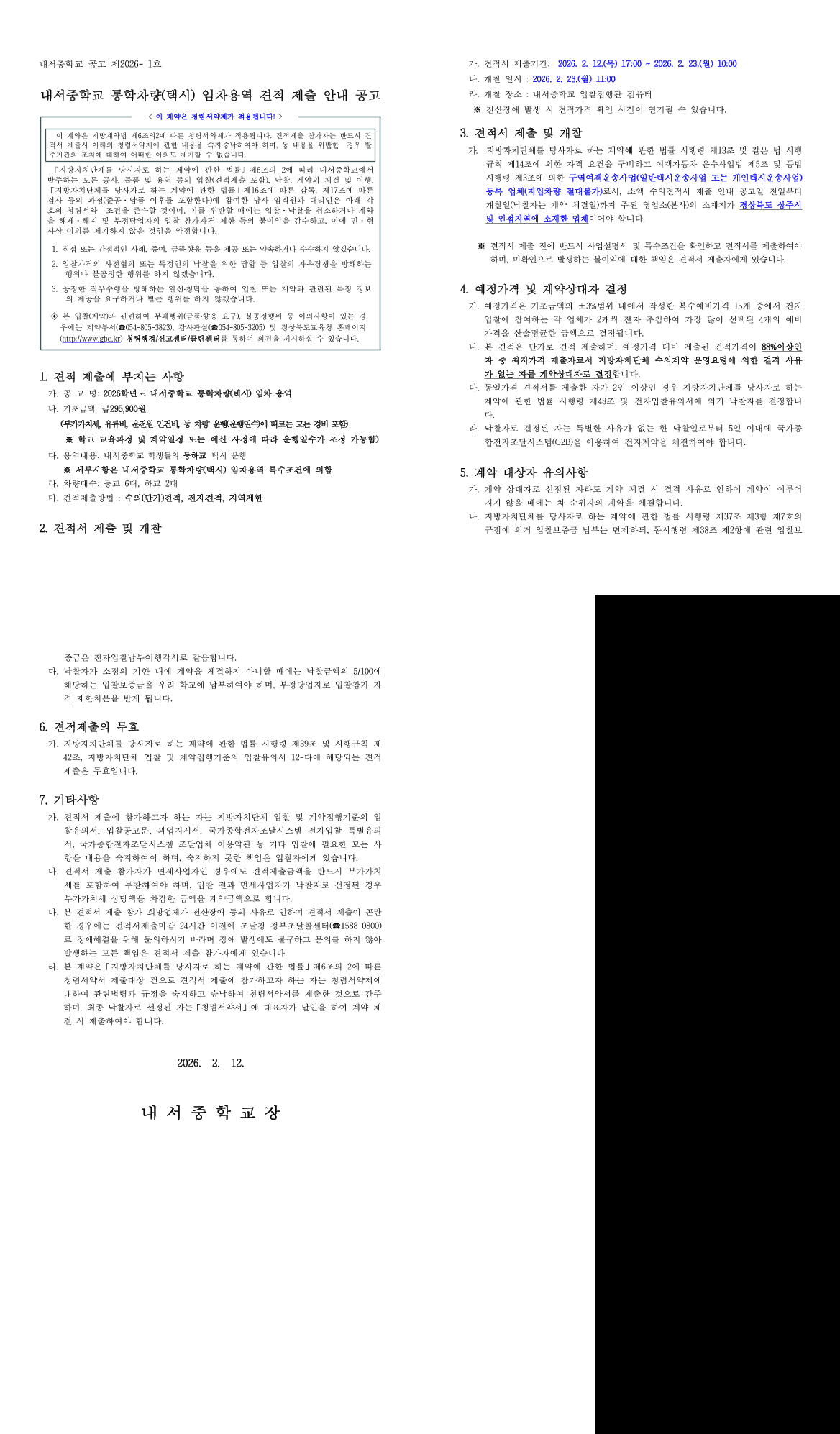 2026학년도 내서중학교 통학차량(택시) 임차용역 소액 수의 견적 재공고 |