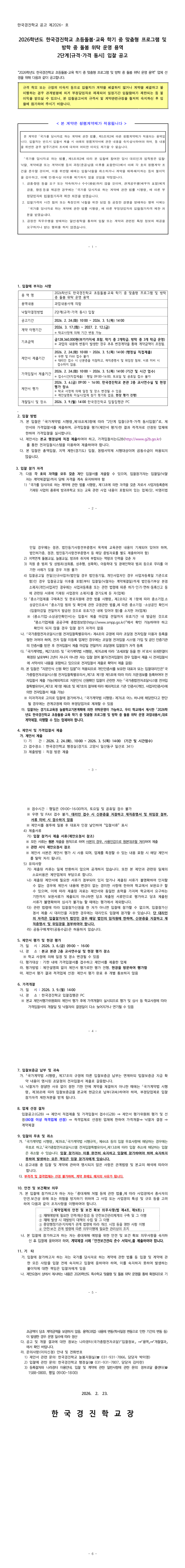2026학년도 한국경진학교 초등돌봄교육 학기 중 맞춤형 프로그램 및 방학 중 돌봄 위탁 운영 용역 2단계(규제-가격 동시) 입찰 공고 |