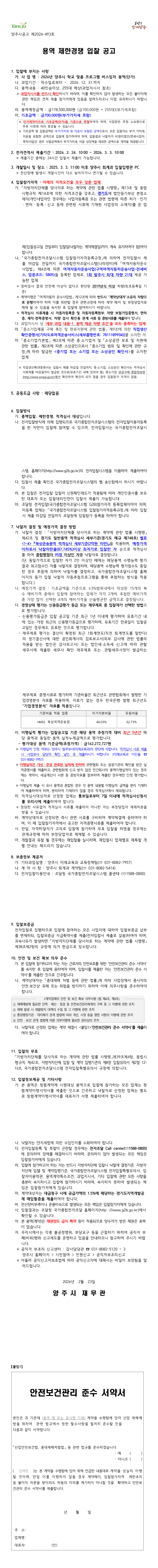 2026년 양주시 학교 맞춤 프로그램 버스 임차 용역 |