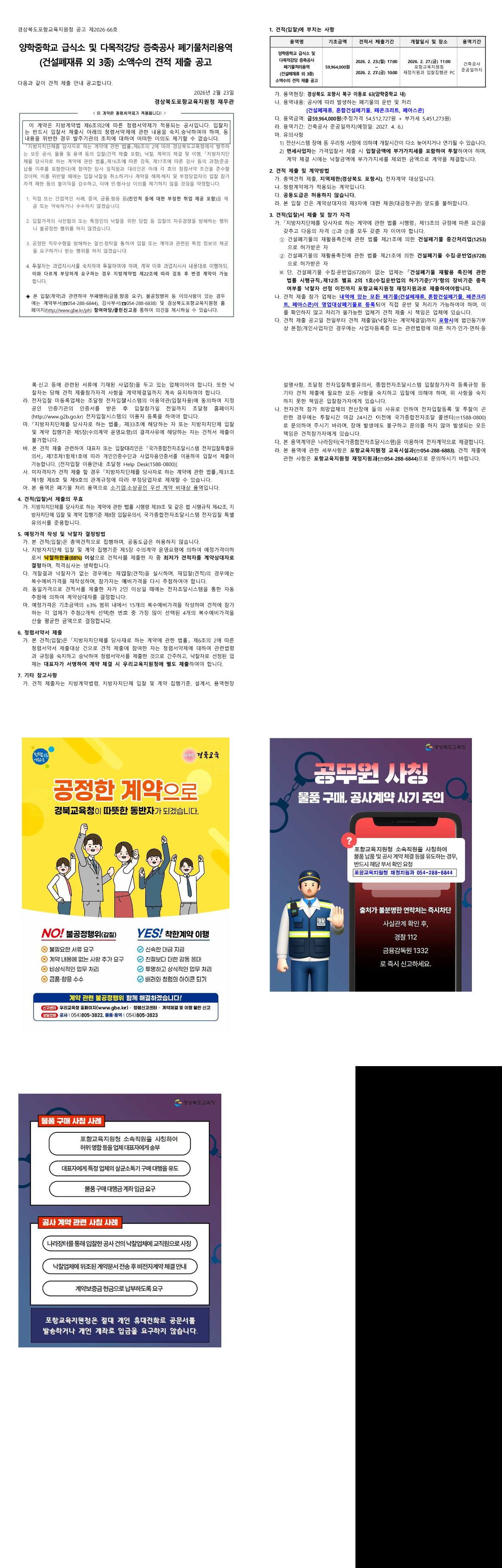 양학중학교 급식소 및 다목적강당 증축공사 폐기물처리용역 (건설폐재류 외 3종) 소액수의 견적 제출 공고 |