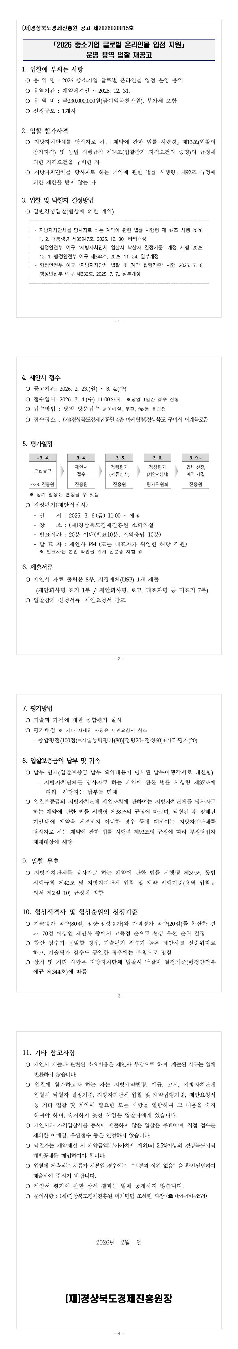 2026 중소기업 글로벌 온라인몰 입점 운영 용역 |