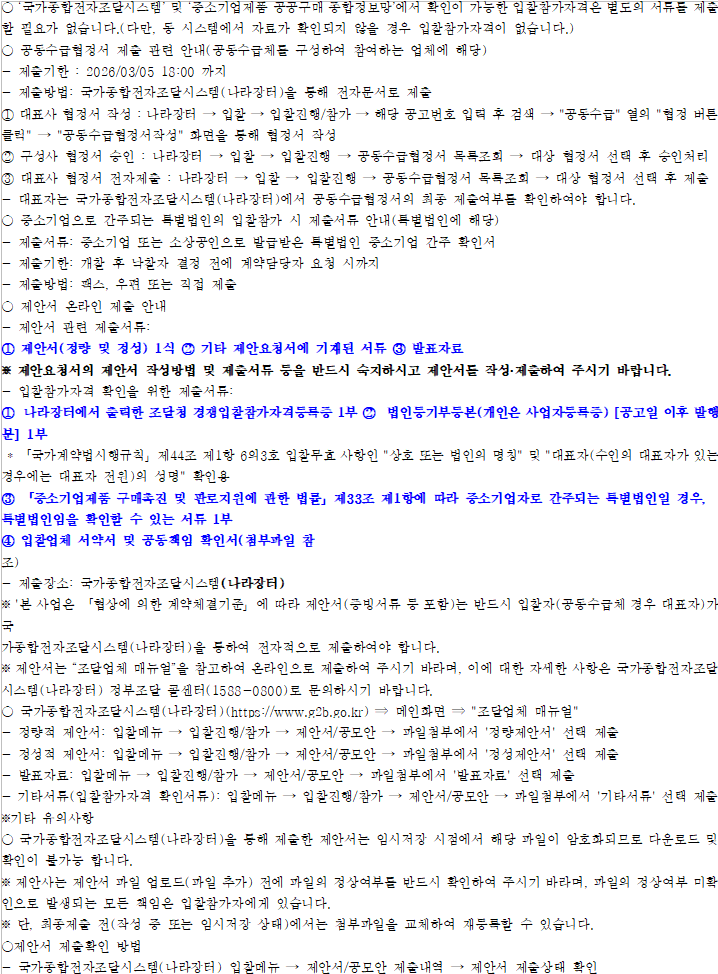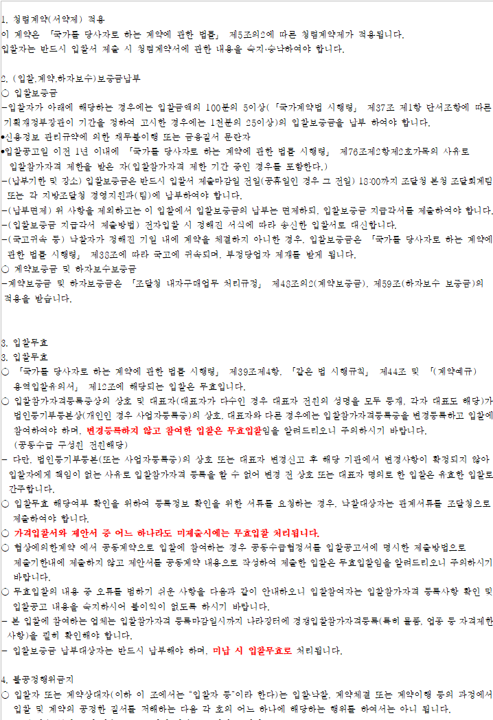 · 입찰에 참여하시기 전에반드시 공고서를 숙지하여 정확한 제한 업종을 확인하시기 바랍니다.