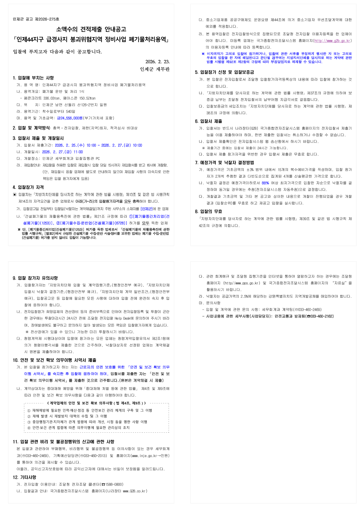인제44지구 급경사지 붕괴위험지역 정비사업 폐기물처리용역 |