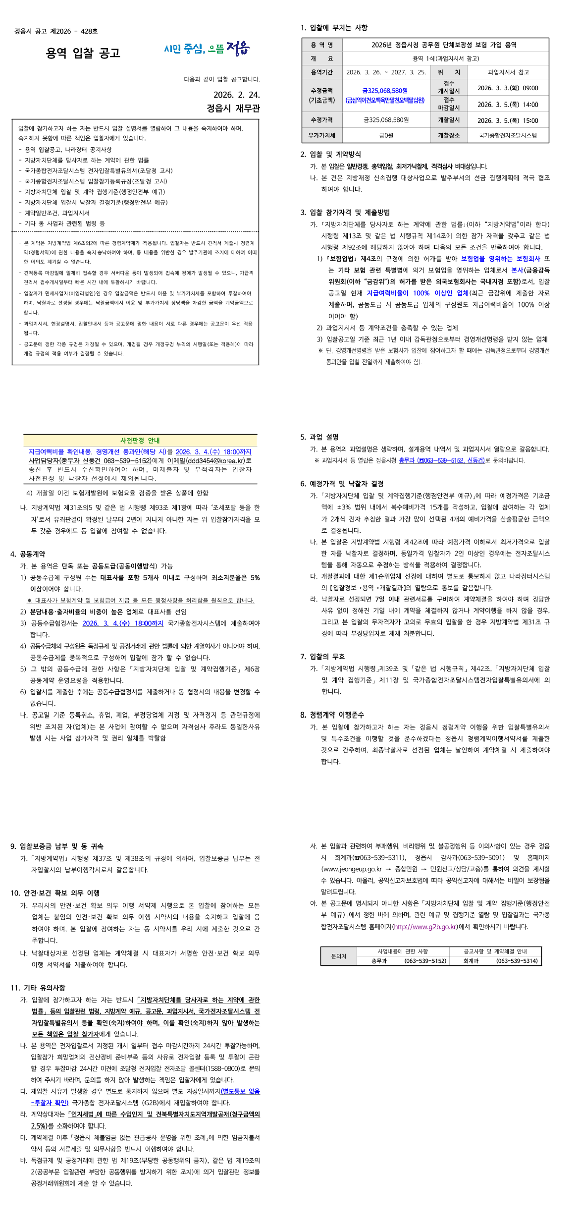 2026년 정읍시청 공무원 단체보장성 보험 가입 용역 |