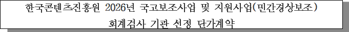 ㅇ 입찰건명 : 한국콘텐츠진흥원 2026년 국고보조사업 및 지원사업(민간경상보조) 회계검사 기관 선정 단가계약