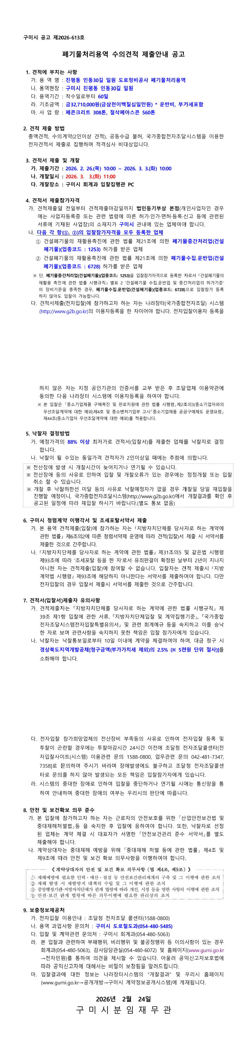진평동 인동30길 일원 도로정비공사 폐기물처리용역 |