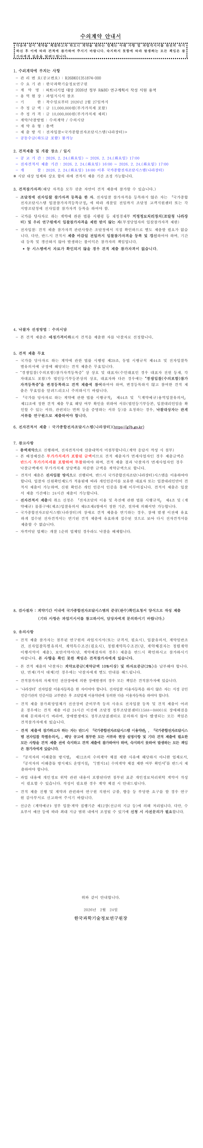 파트너기업 대상 2026년 정부 R&BD 연구계획서 작성 지원 용역 |