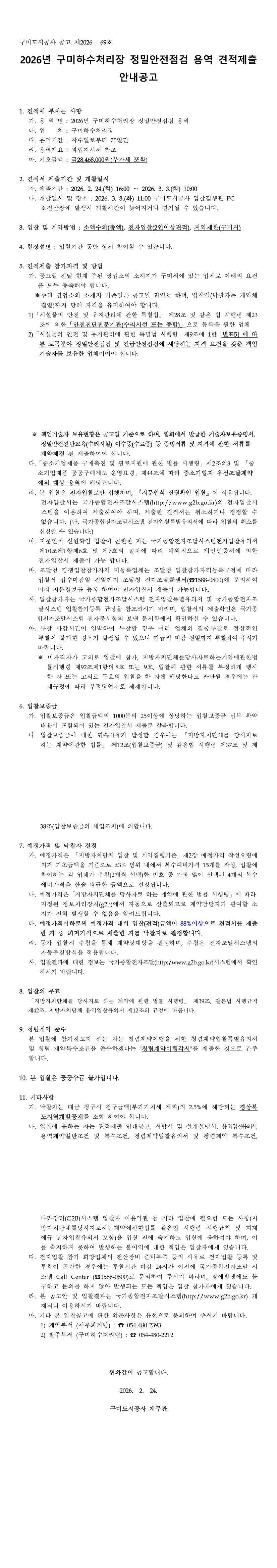 2026년 구미하수처리장 정밀안전점검 용역 |