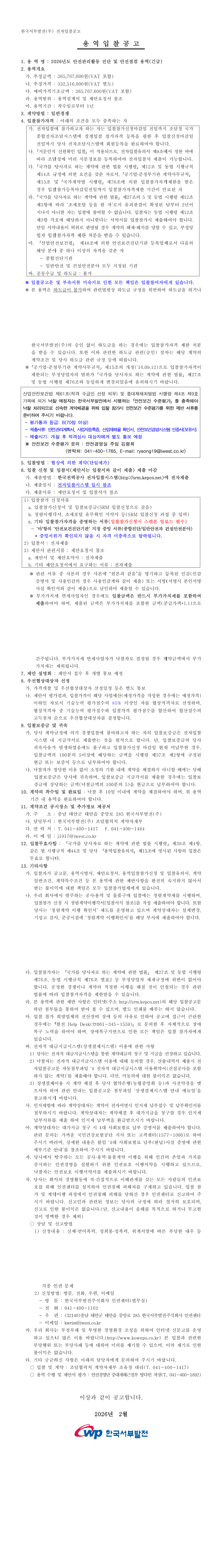 한국서부발전(주) 미래사업본부 조달협력처 계약자재부 |