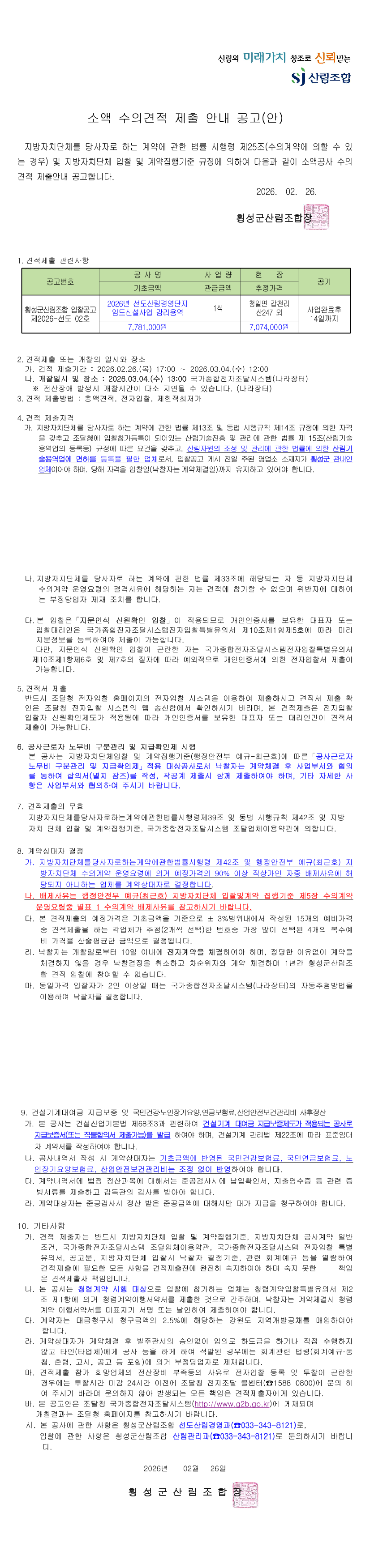 2026년 선도산림경영단지 임도신설사업 감리용역 |