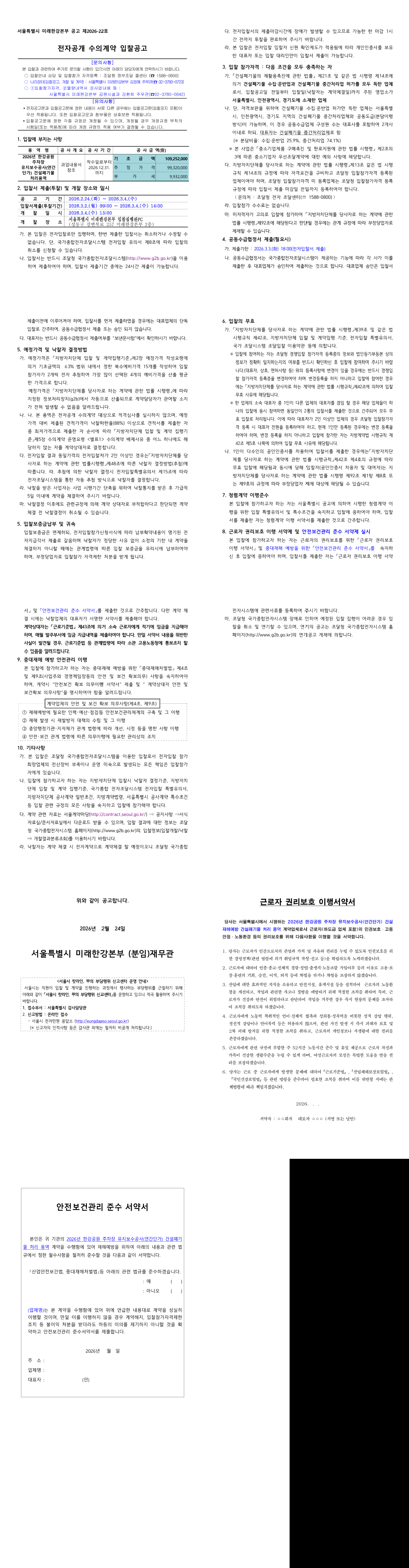 2026년 한강공원 주차장 유지보수공사(연간단가) 건설폐기물 처리용역 |