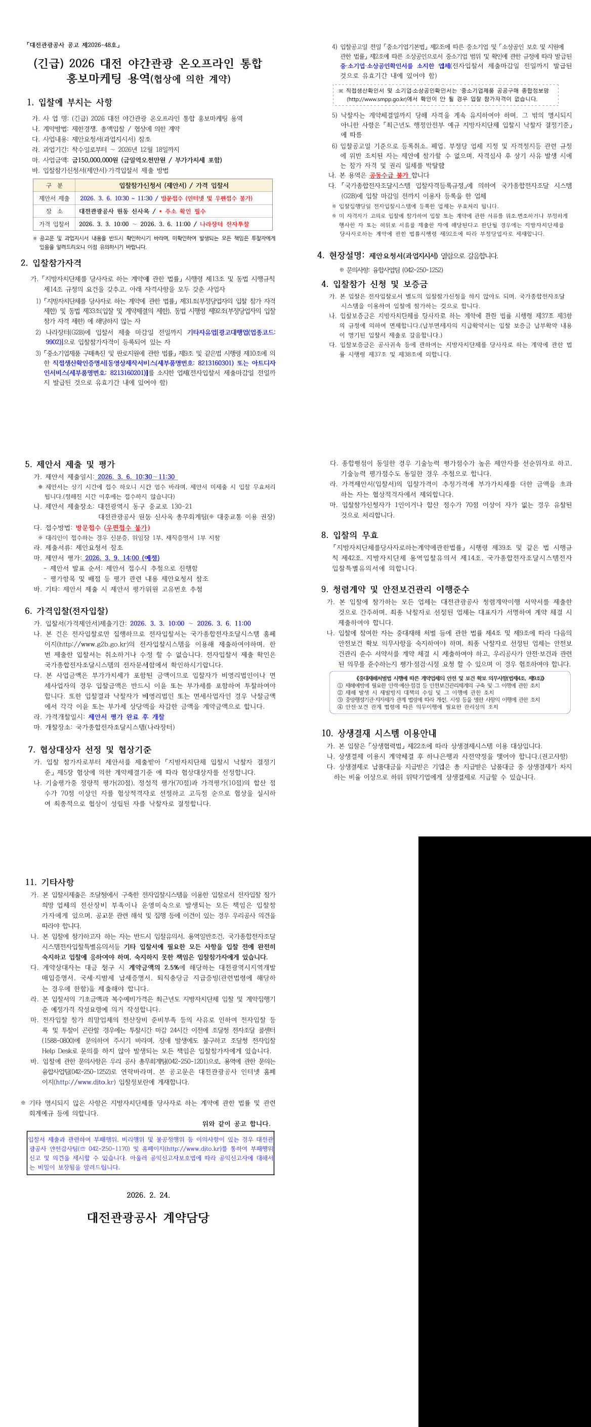 (긴급) 2026 대전 야간관광 온오프라인 통합 홍보마케팅 용역 |