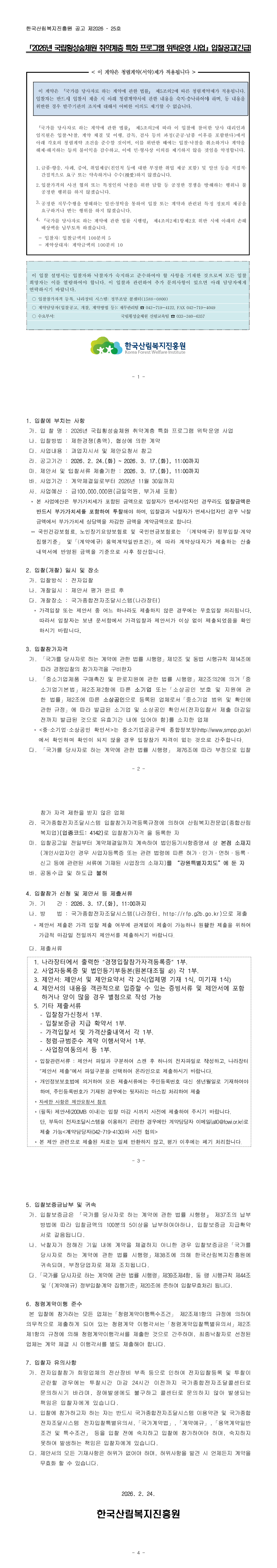 2026년 국립횡성숲체원 취약계층 특화 프로그램 위탁운영 사업 |