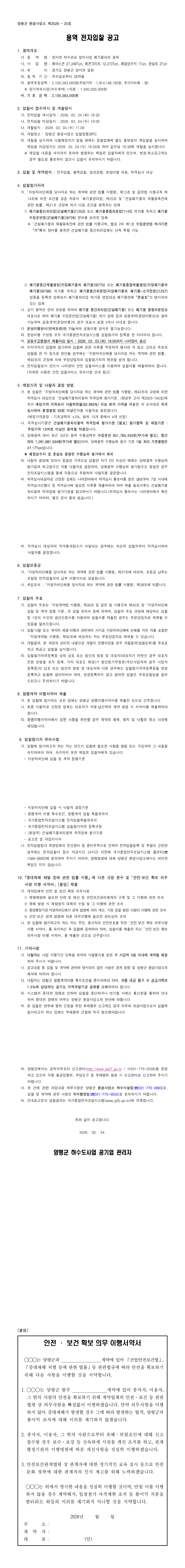 양서면 하수관로 정비공사 폐기물처리 용역 |
