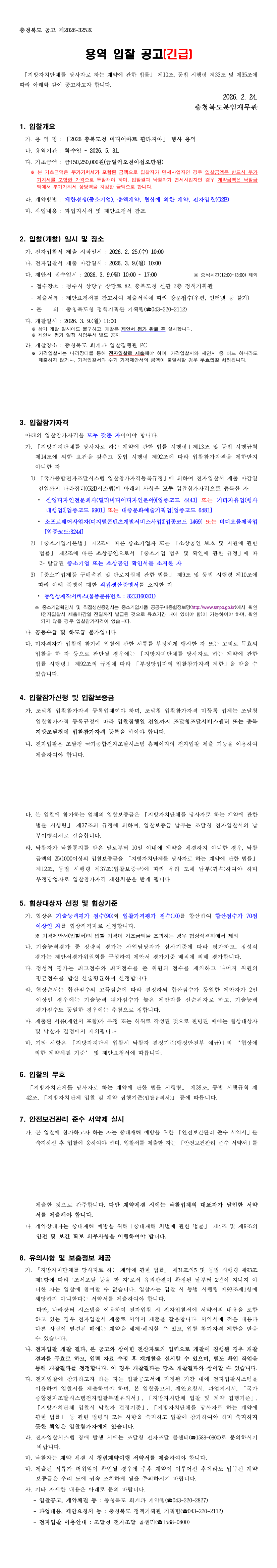 「2026 충북도청 미디어아트 판타지아」 행사 용역 |