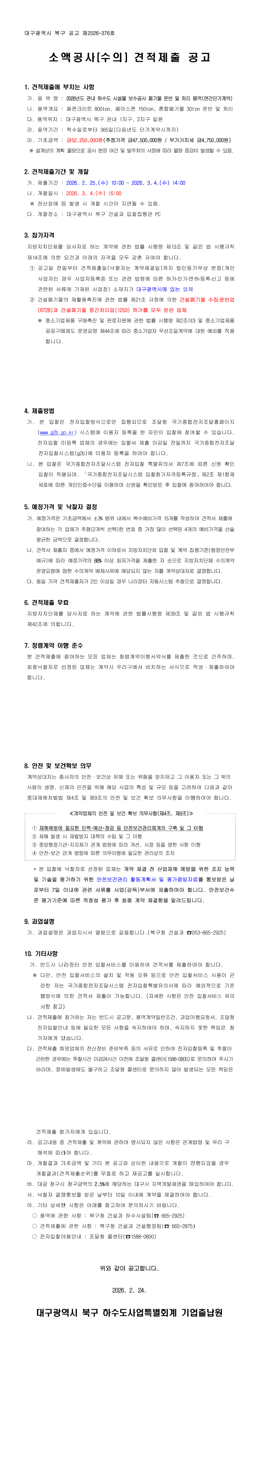 2026년도 관내 하수도 시설물 보수공사 폐기물 운반 및 처리 용역(연간단가계약) 수의견적 제출안내 공고 |