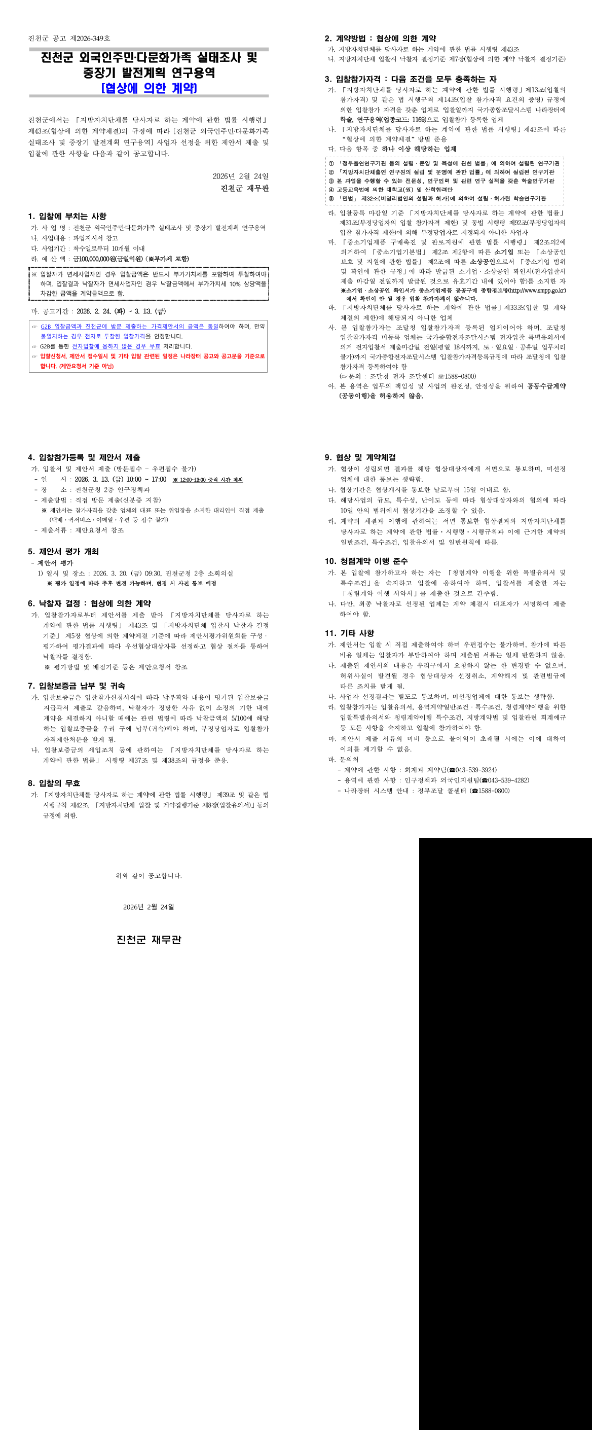 진천군 외국인주민·다문화가족 실태조사 및 중장기 발전계획 연구용역 |
