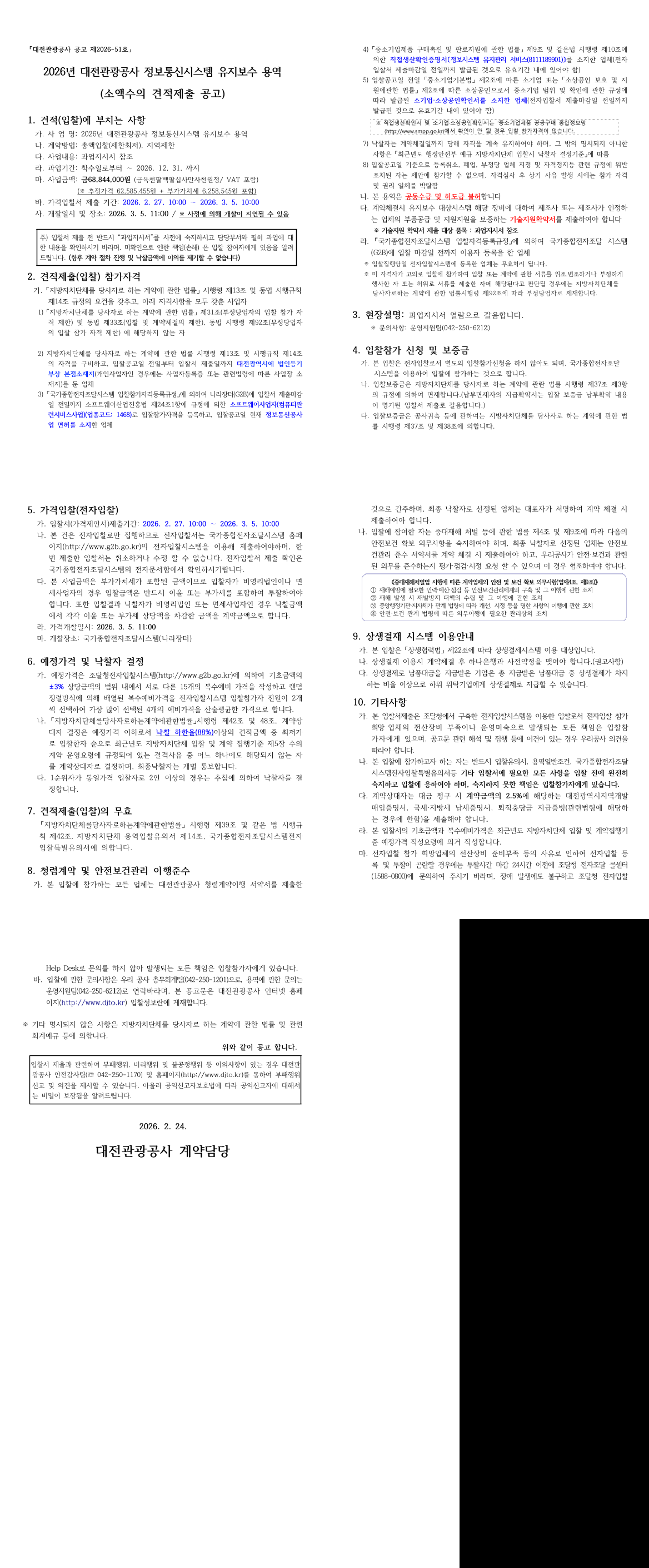 2026년 대전관광공사 정보통신시스템 유지보수용역 |