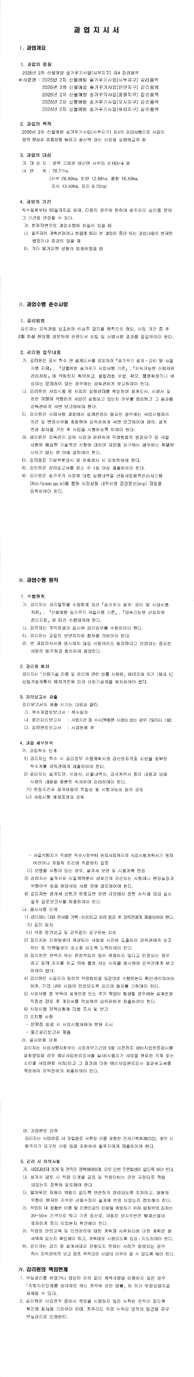 2026년 2차 산불예방숲가꾸기사업(중화지구)감리용역 |