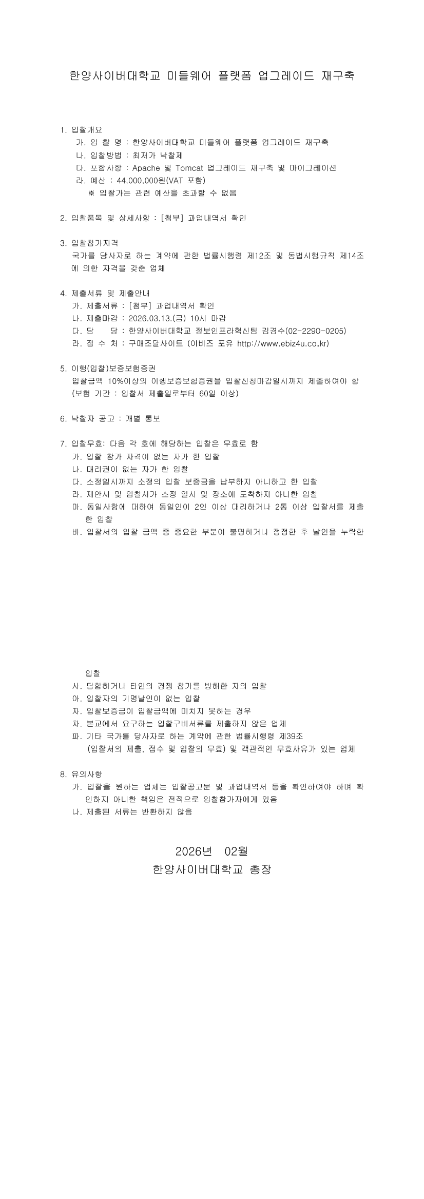 한양사이버대학교 미들웨어 플랫폼 업그레이드 재구축 |