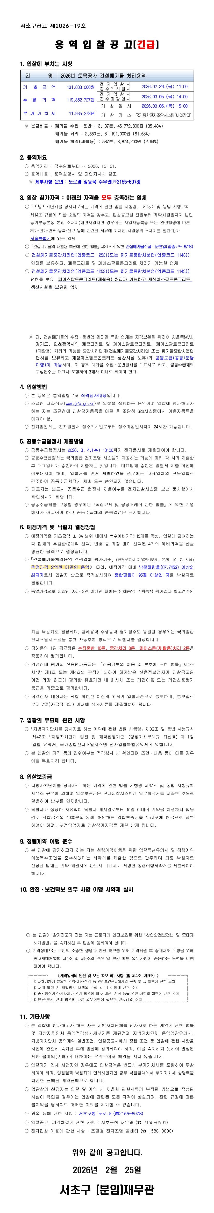 2026년 토목공사 건설폐기물 처리용역 |