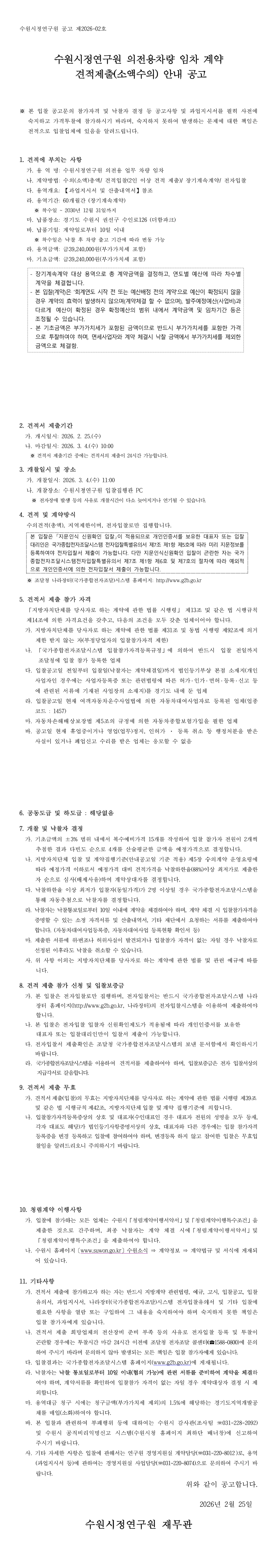 수원시정연구원 의전용 차량 임차 계약 견적제출(소액수의) |