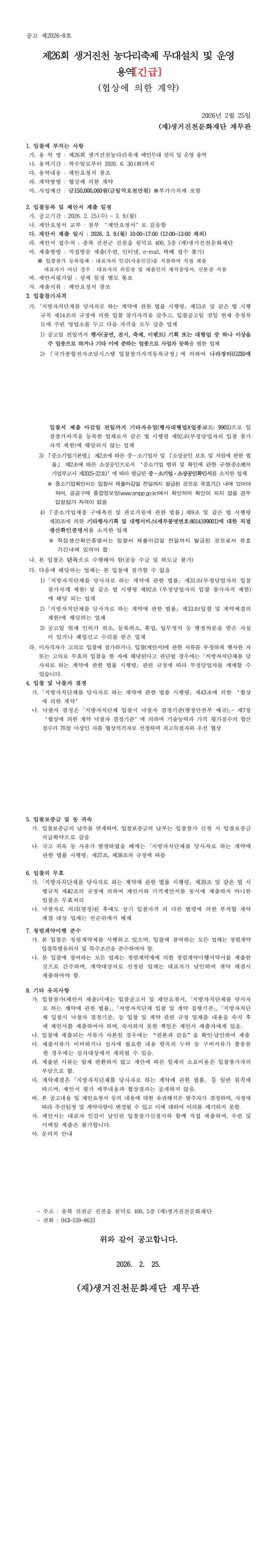 제26회 생거진천 농다리축제 무대설치 및 운영 용역 |