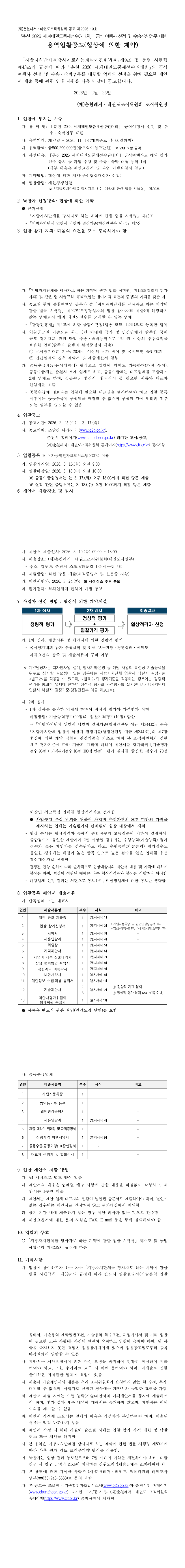 「춘천 2026 세계태권도품새선수권대회」 공식여행사 선정 및 수송·숙박업무 대행 용역 |