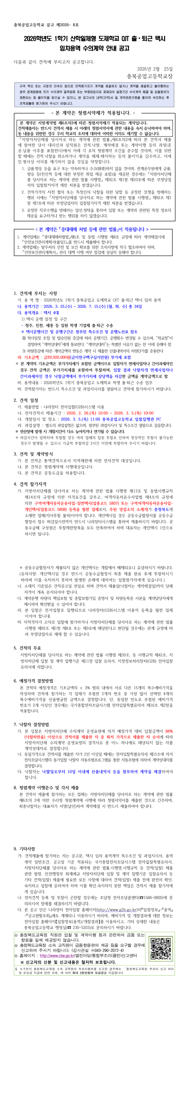 2026. 산학일체형 도제학교 OJT 출ㆍ퇴근 택시 임차용역 수의계약 안내 공고 |