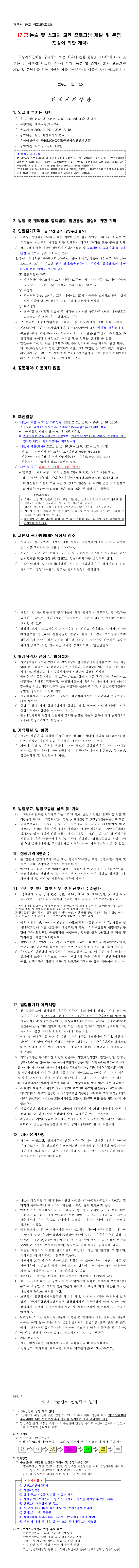 논술 및 스피치 교육 프로그램 개발 및 운영 용역 |