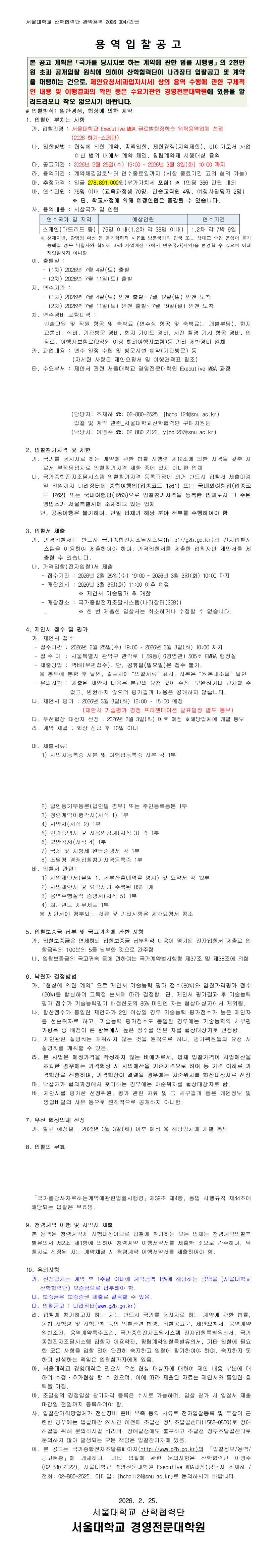 서울대학교 Executive MBA 글로벌현장학습 위탁용역업체 선정(2026년 하계-스페인)_PA202600187 |