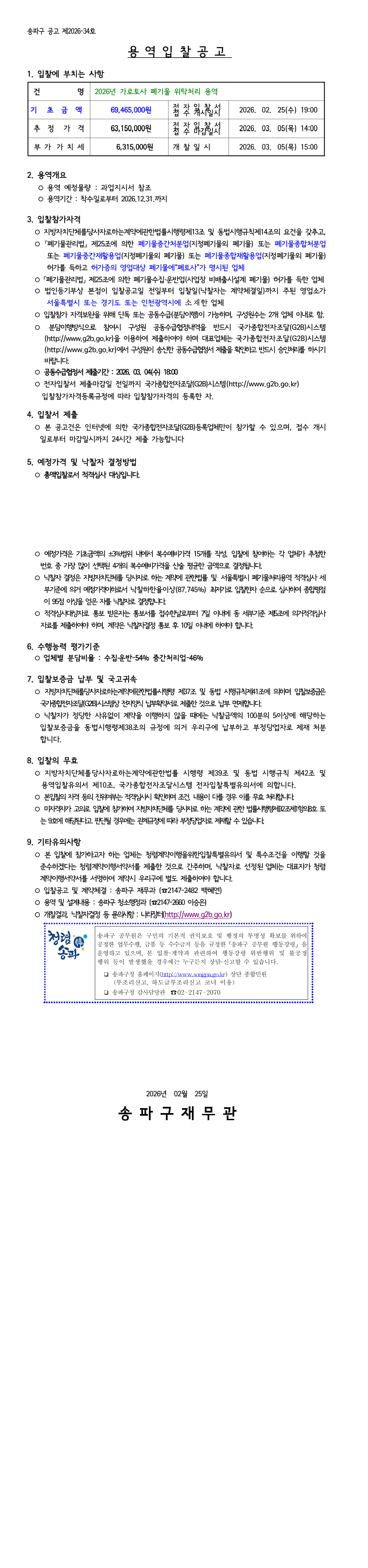 2026년 가로토사 폐기물 위탁 처리 용역 |