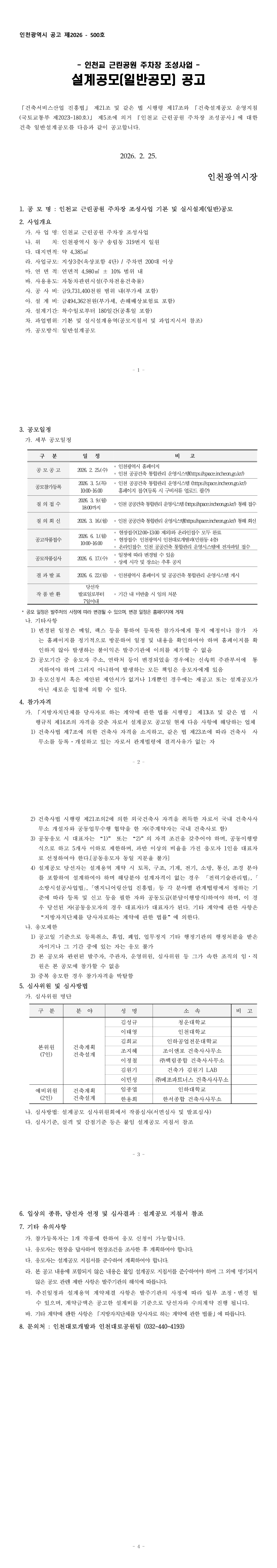 인천교 근린공원 주차장 조성사업 설계공모(일반공모) 공고 |