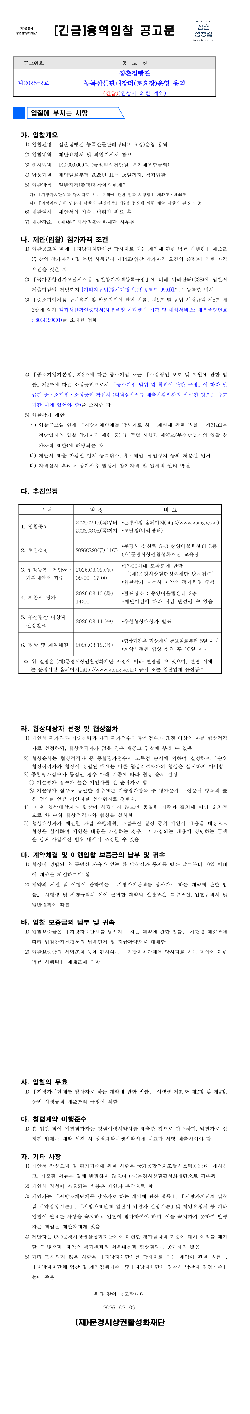 2026 점촌점빵길 농특산물판매장터(토요장)운영 용역 |