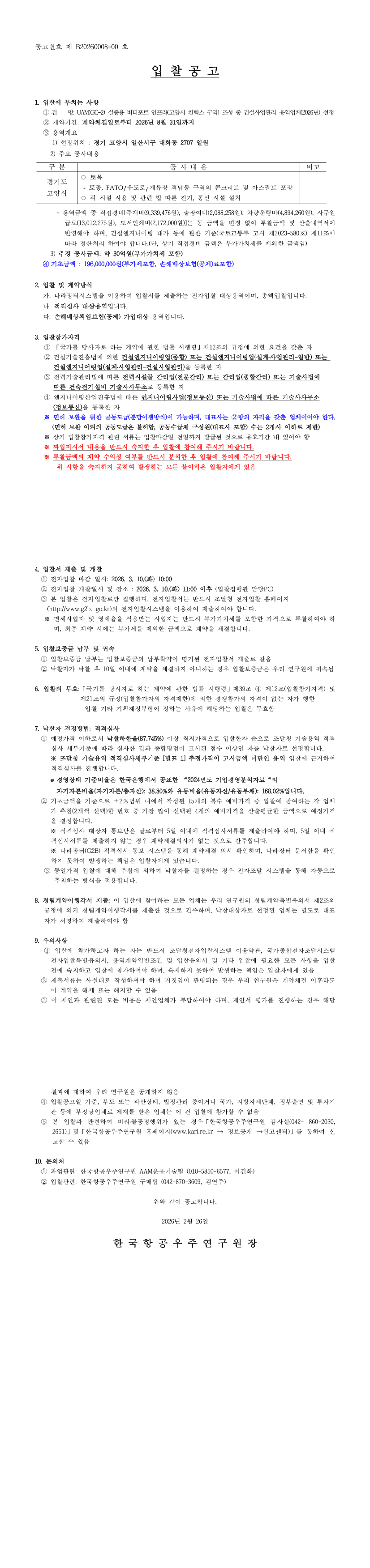 UAM(GC-2) 실증용 버티포트 인프라(고양시 킨텍스 구역) 조성 중 건설사업관리 용역업체(2026년) 선정 |